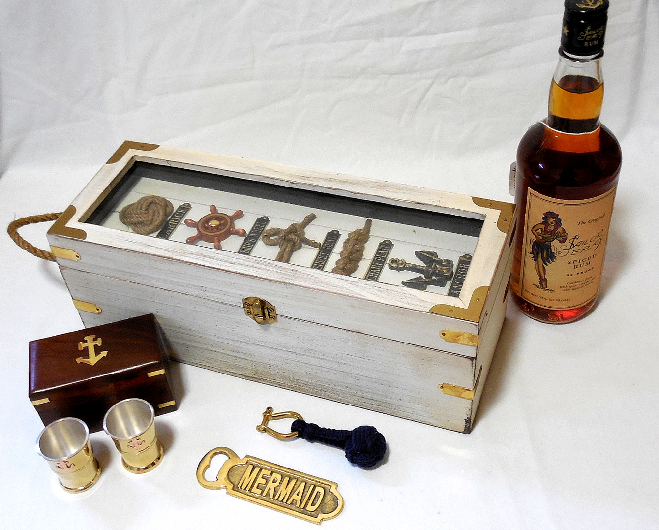 (Rum also) with 5 nautical things under glass. 1 ea. MZ-141 Captain's Brass Shot glasses in nautical