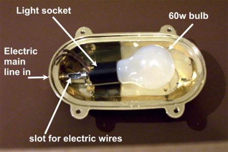 ceiling on a ship or boat). Fixture has water-tight seal.
