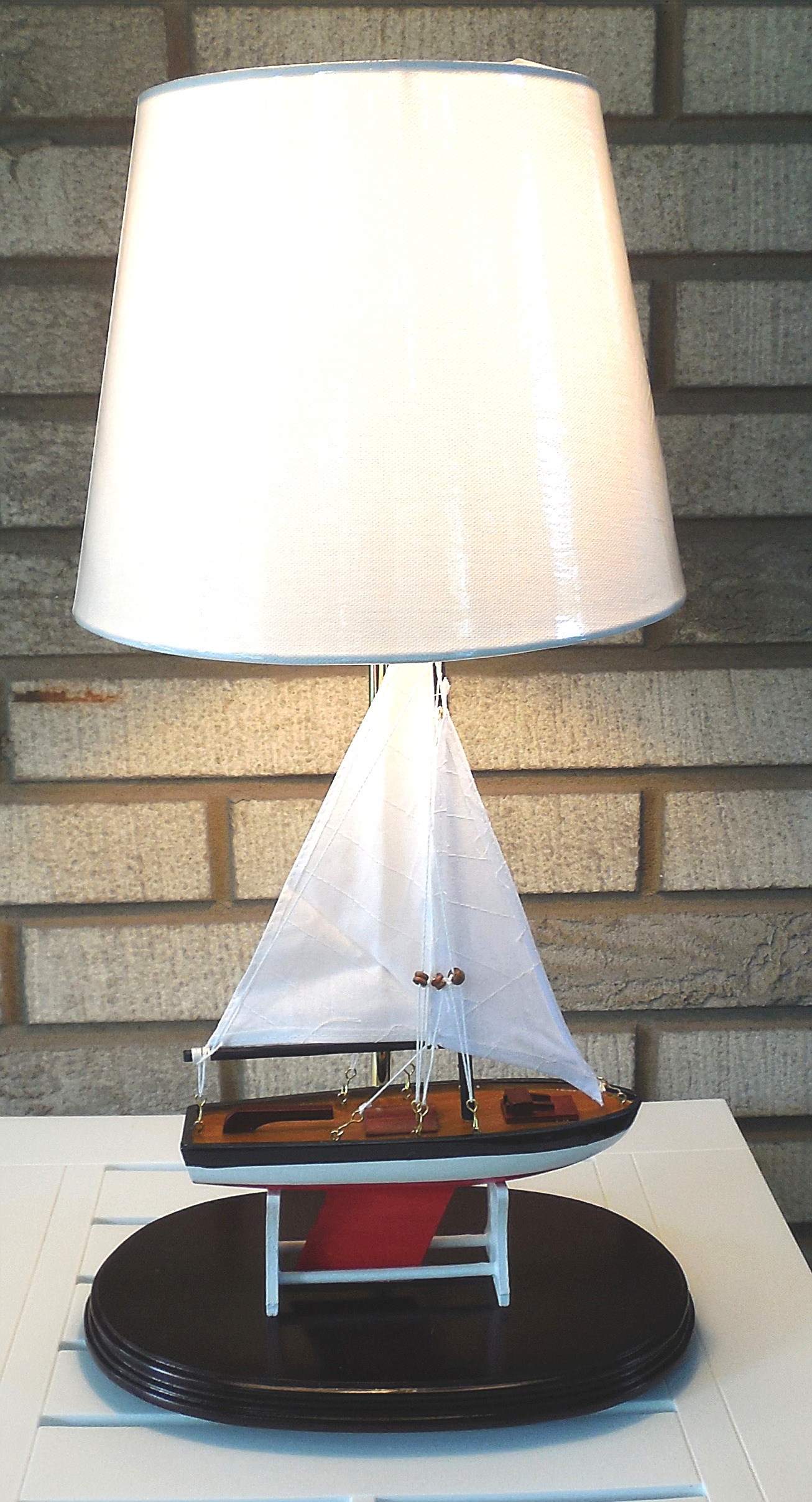 cloth sails. The lamp base is made of solid cherry